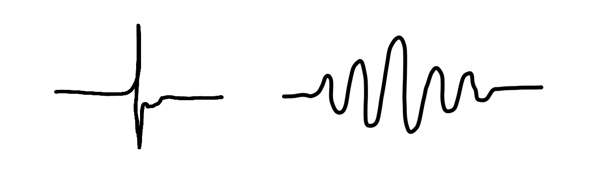 예전에 파군에 관해 살펴보았을 때 가우스 함수 따라 진폭을 가지는 파동을 무한 개 중첩시키면 다음과 같이 국소화된 파동이 얻어진다고 언급했던 적이 있다.