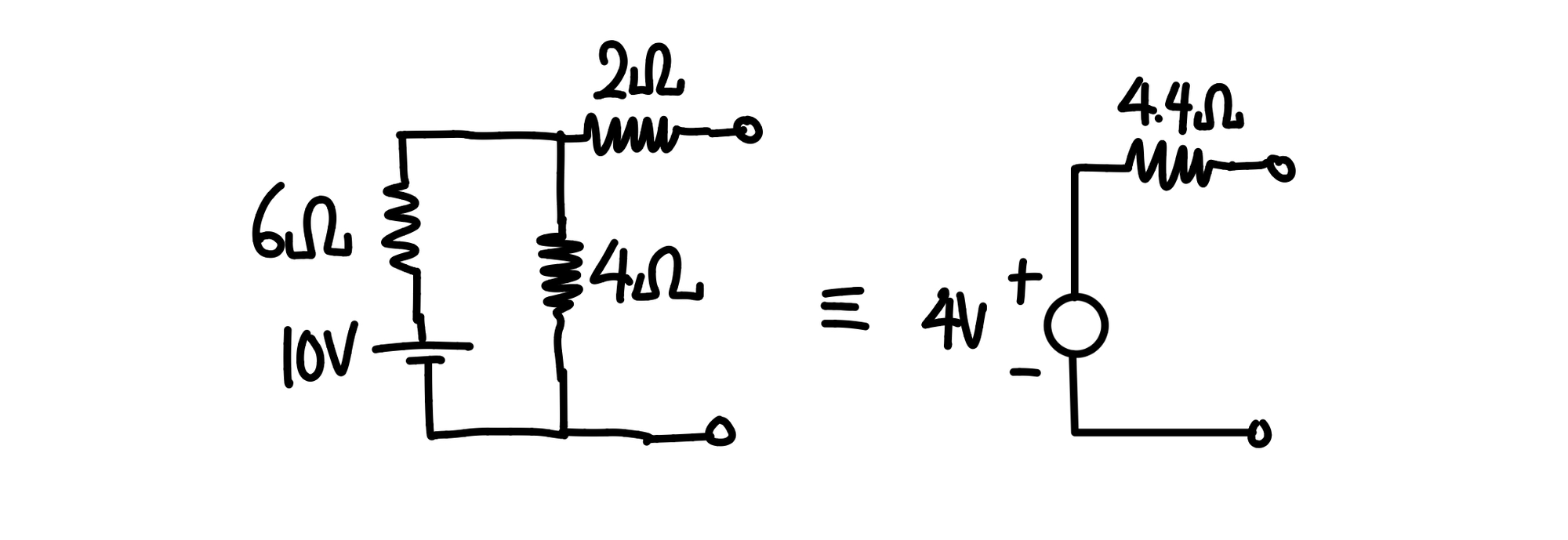 따라서, 위 예시의 테브난 등가회로를 구한 결과는 다음과 같다.